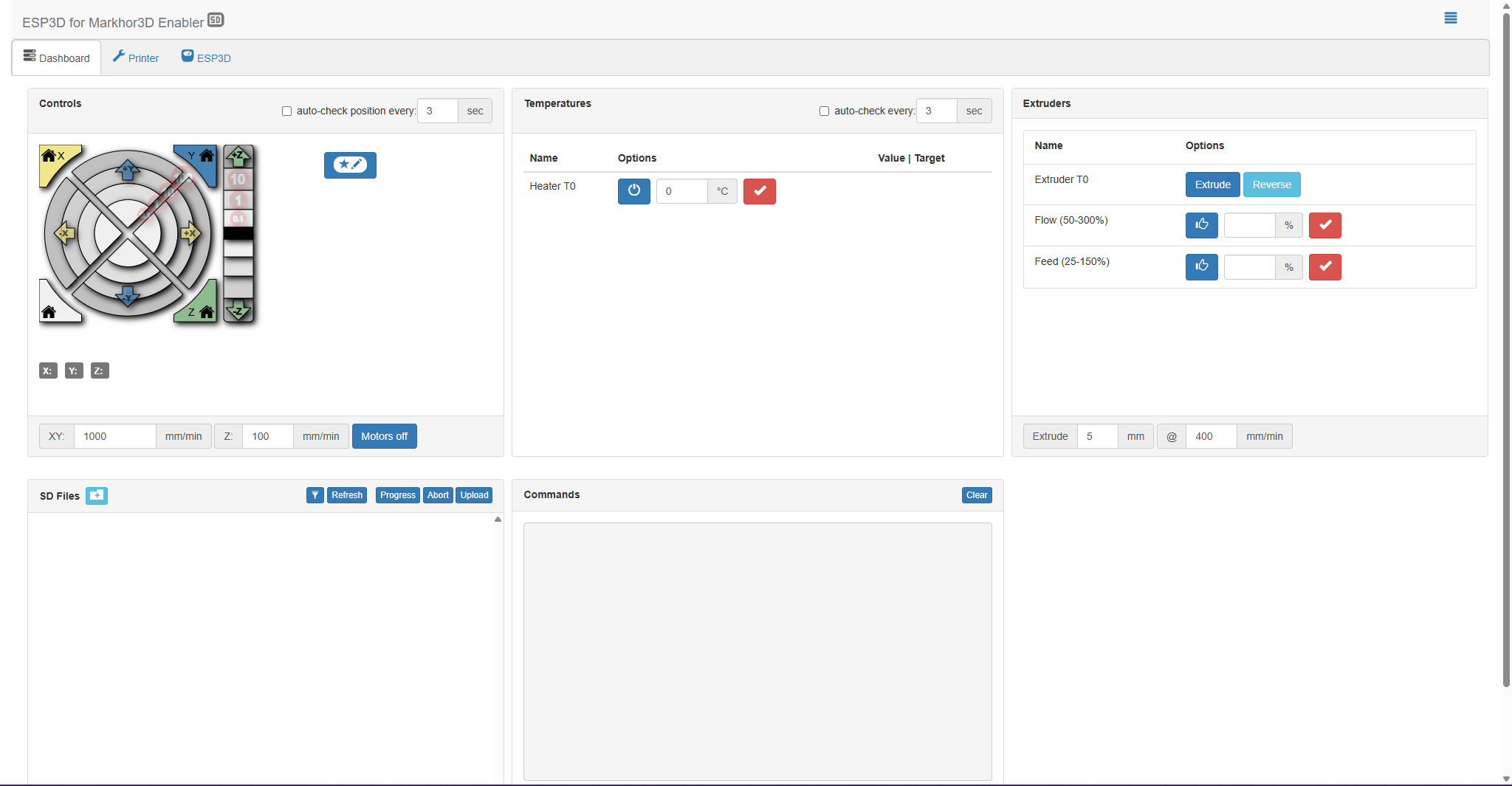http://m3d-enabler.local - You should now see the printer’s built-in control panel.
