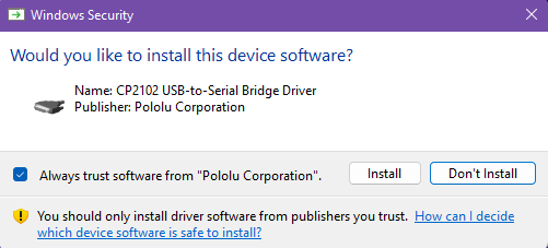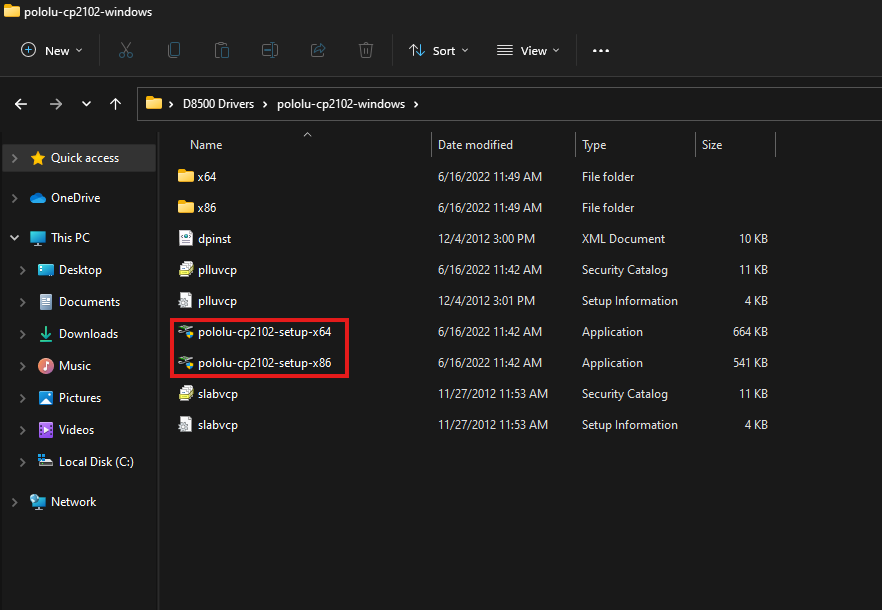 pololu-cp2102-setup-x64.exe→ for 64-bit Windows
