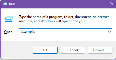 Write %temp% in it as shown in the image and press OK and a new folder will open up. In this folder, you should see a folder named Orca Slicer. Delete this folder and relaunch Orca Slicer and set up your printer again.