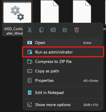 Once downloaded, run the installer as administrator by right clicking on it and selecting the option from the drop down menu: