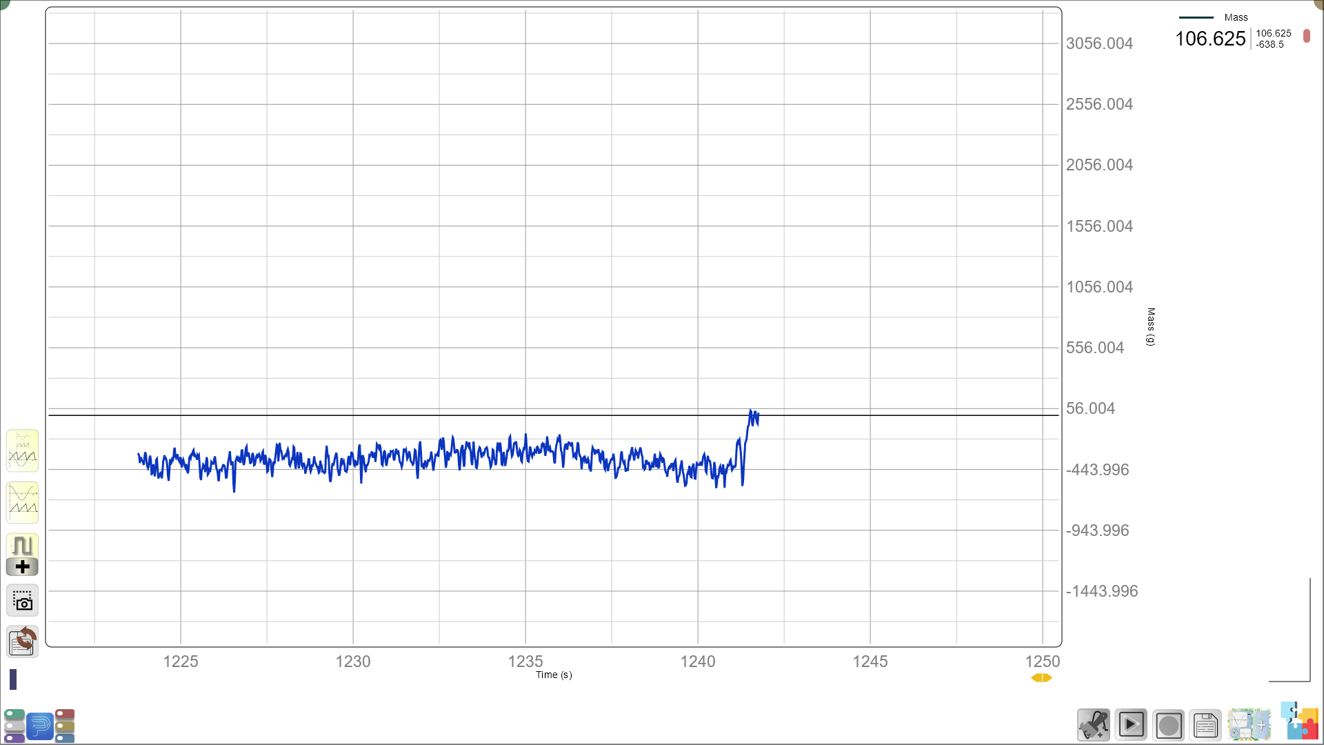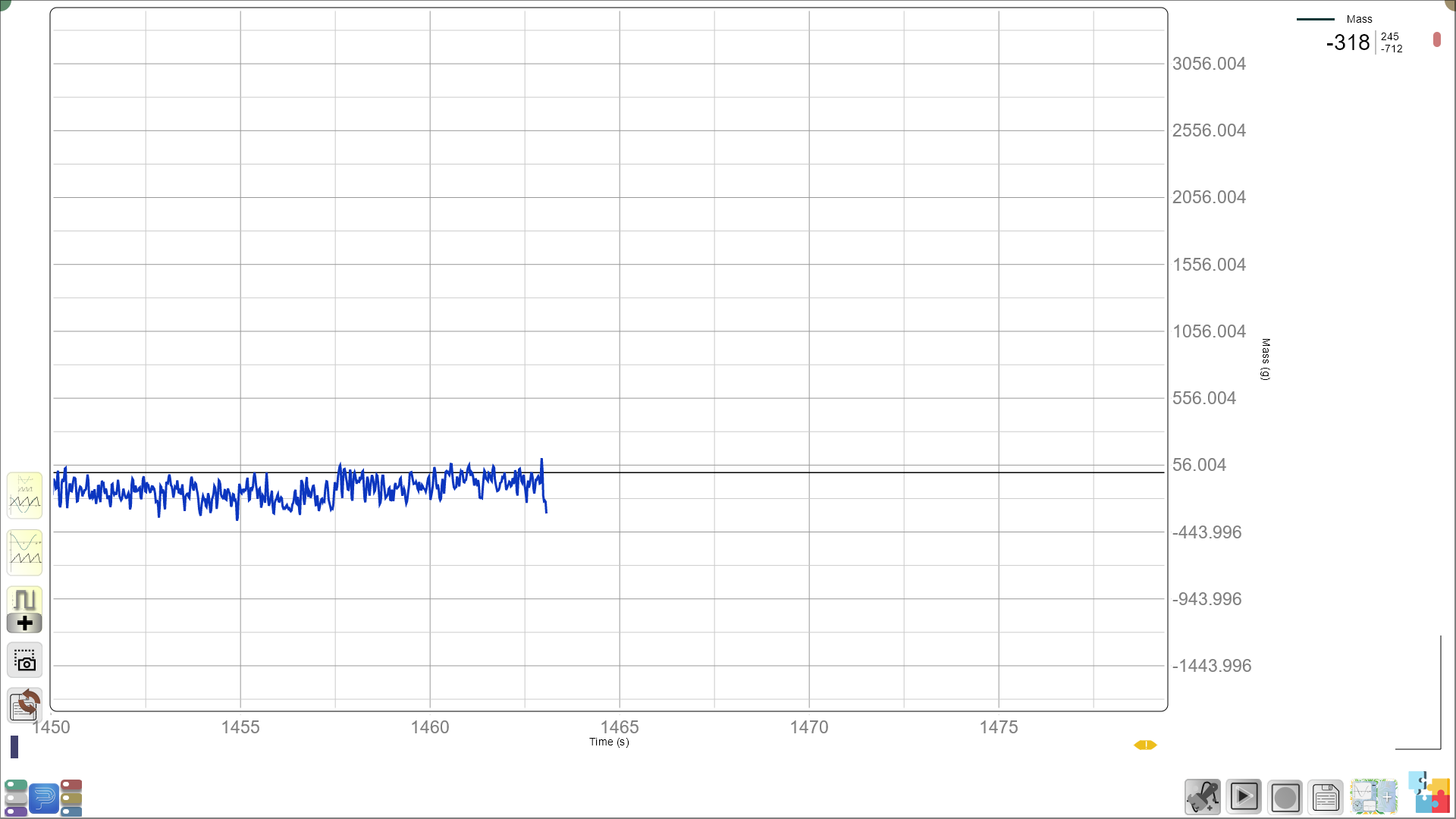 This can be simply fixed using the tare button in the “Quantities Menu”. Just open the menu and click on the quantity named “Mass”. You will see a button in the sub-menu named “Tare.”