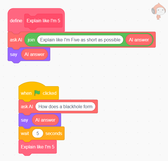 Among the suit of extensions available on M3D Scratch, there is a custom made extension called M3D Ask AI.
